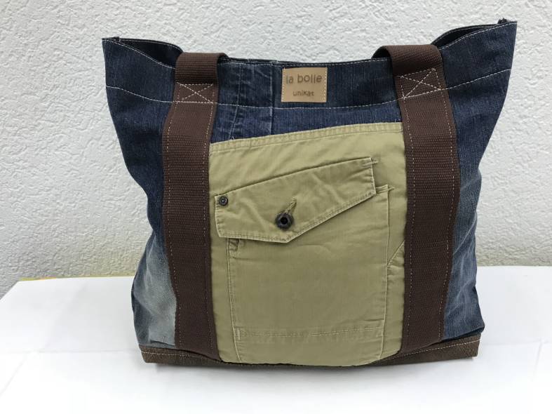 In meinem Atelier am Lagerplatz in Winterthur entwerfe und nähe ich Taschen aus getragenen Jeans. Jede Tasche ist ein Unikat.