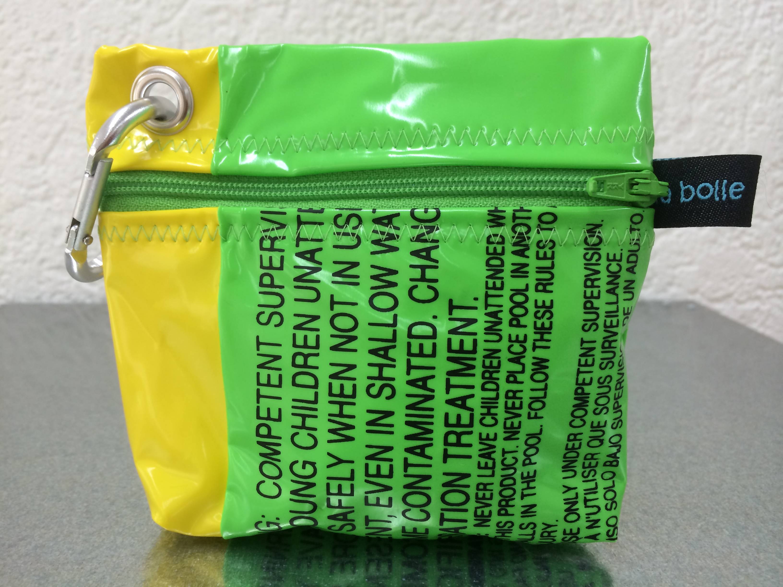 Defekten Planschbecken hauche ich ein neues Leben ein. Daraus entstehen flippige Badetaschen, Bikinitäschli und Schwimmbadbörsen.